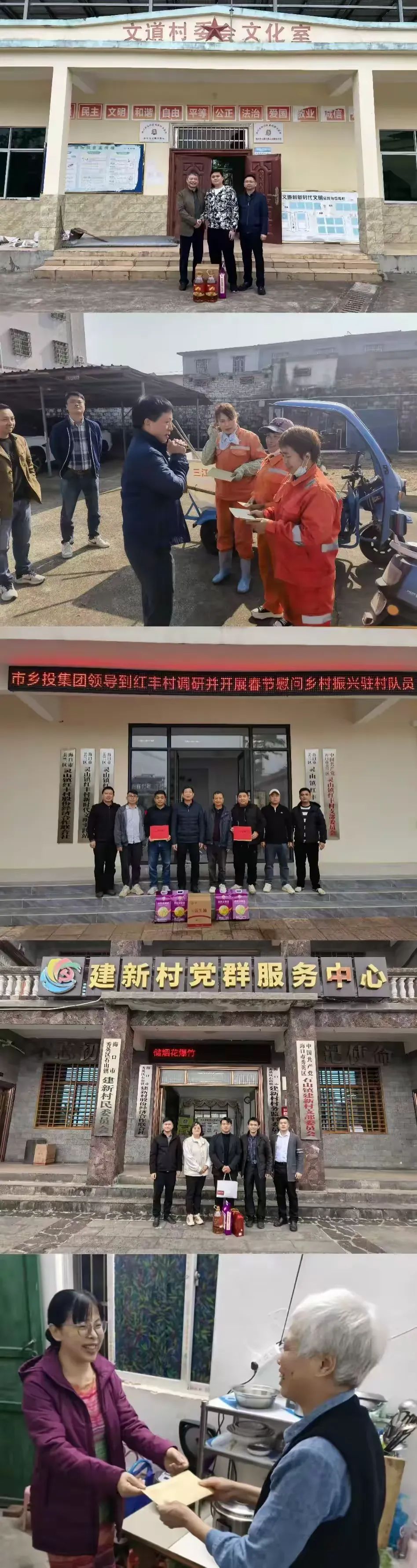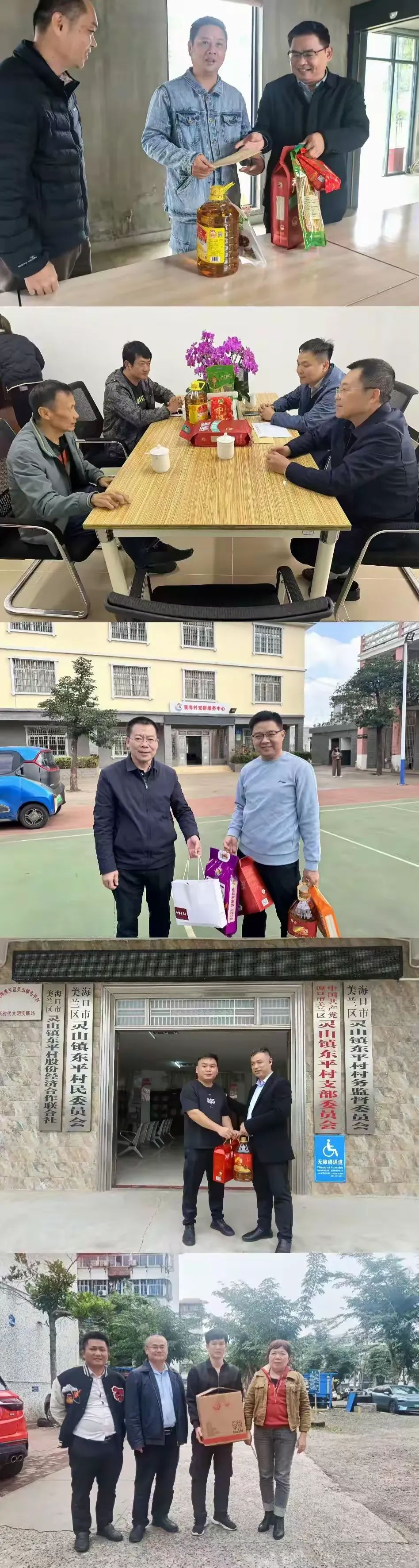 集团领导分别前往琼山区龙塘镇、大坡镇,美兰区灵山镇、演丰镇,秀英区东山镇、永兴镇、石山镇等地看望慰问19名乡村振兴工作队队员和驻村书记,详细了解过去一年在推动乡村产业发展、完善基础设施建设和提升和美乡村基层治理水平等方面的工作开展情况,细心叮嘱大家在做好工作的同时照顾好身体,兼顾好工作和生活,用实打实的担当擦亮党员先锋本色,并送上新春的祝福与慰问品。